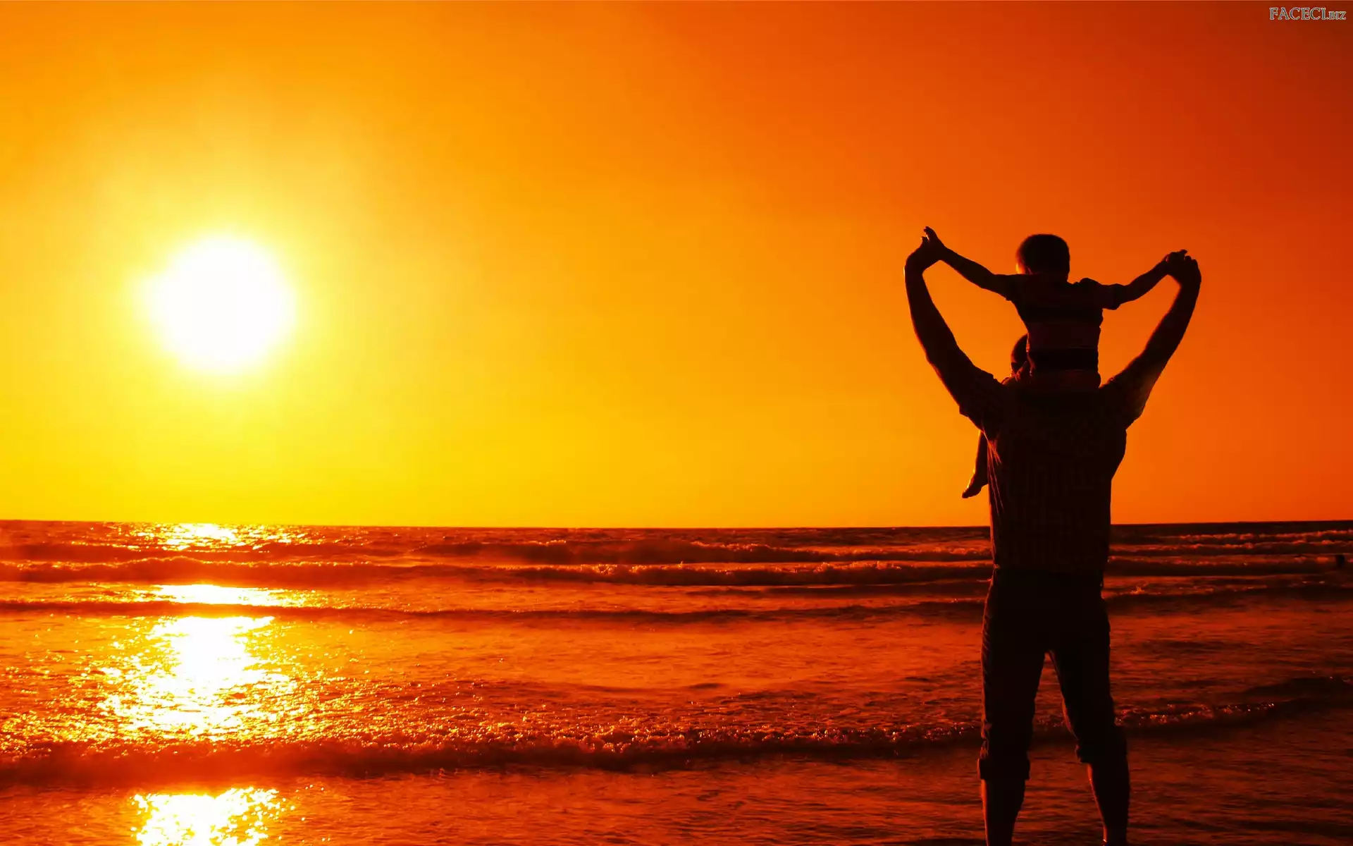 Synem, Ojciec, Słońce, Fale, Z, Morze